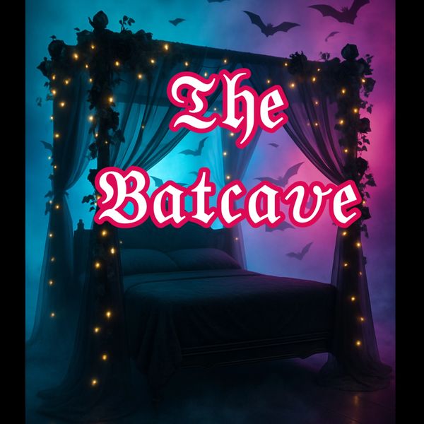 A stylized bedroom featuring a seductive goth-themed canopy bed. A moody atmosphere that will be sure to capture the attention of your followers!