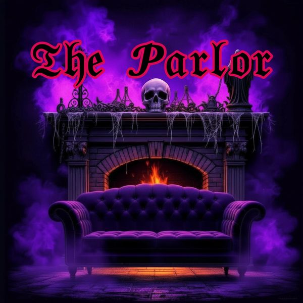 A studio featuring Victorian-era furniture, plenty of dark decor, and an antiqued brick fireplace. Sure to make your content hit even harder!